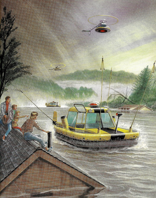 This 1961 take on lunar colonies shows a quaint optimism about having giant caverns readily to hand, but I do like the layout of the quarters complete with computer that's probably a videophone.